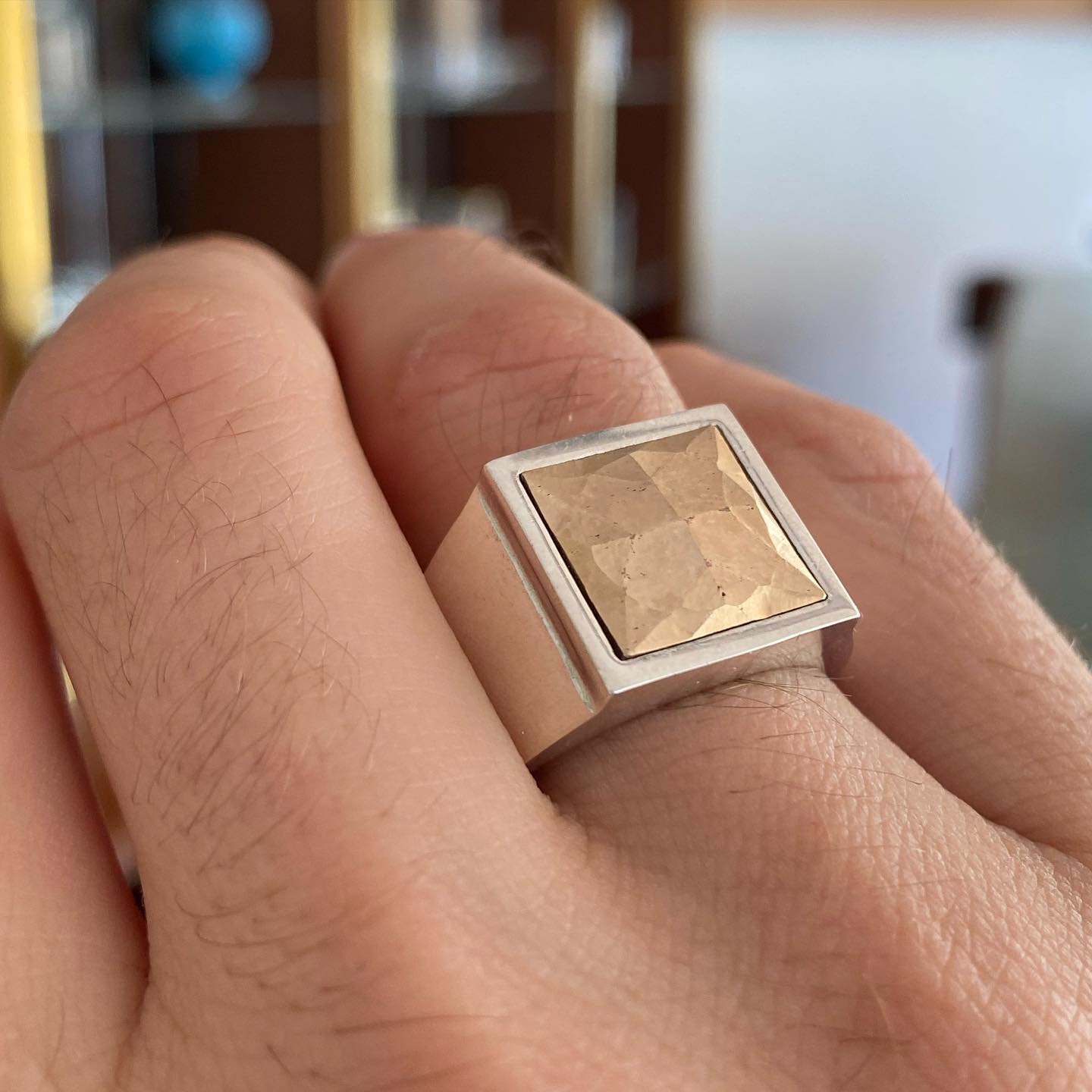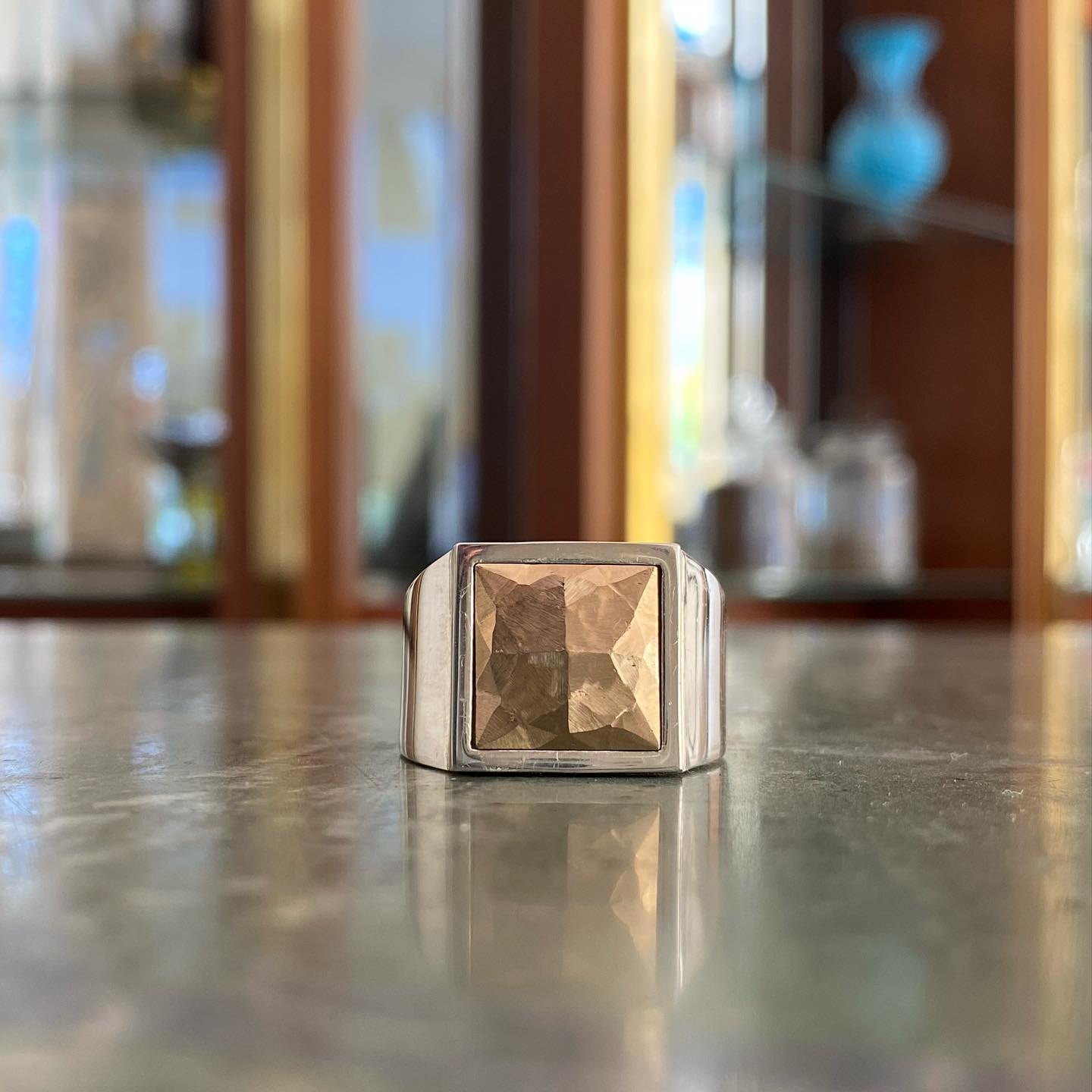 Kontrastın Gücü: Gümüşün modern ışıltısı ile bronzun antik, sıcak tonları arasındaki geçiş; yüzüğe dinamik, maskülen ve dikkat çekici bir estetik katar.